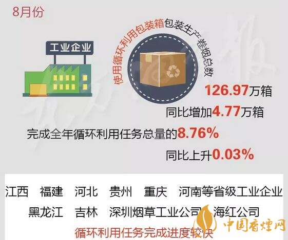 9月17日,國家煙草專賣局通報了8月份行業(yè)卷煙包裝箱循環(huán)利用情況。下面香煙網(wǎng)小編就帶大家具體了解一下。