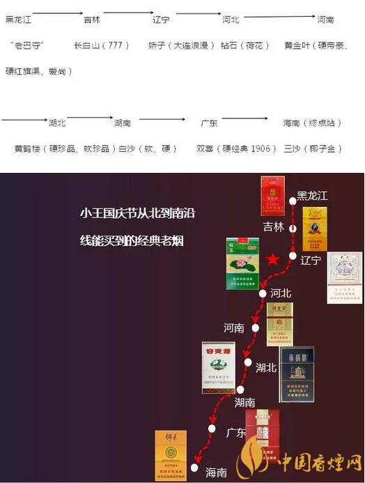 咱們先從南北說起。假設本次旅游的主角小王從黑龍江坐火車出發(fā),一省一停,直至海南下車小王從黑龍江出發(fā),上車前先買包10元/包的“老巴奪”,以慰藉接下來的思鄉(xiāng)之情,并避免抽不慣外省的煙。