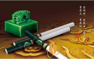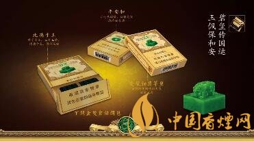 取“玉溪(雙中支翡翠)”煙盒靜觀,其龍紋環(huán)繞,王者其色,注定生而不凡,尊貴無(wú)上。煙盒正面圖案是清乾隆御寶交龍鈕翡翠玉璽,正上方的“翡翠”兩個(gè)字用翡翠色渲染,質(zhì)感十足,一脈相承。煙盒正面中間,印有“比德于玉”四字,傳遞著“君子高義,玉有五德,比德于玉,溫潤(rùn)而澤”的文化理念。