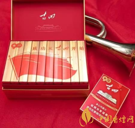 古田金中支90周年紀(jì)念版在包裝正面左上角有90周年紀(jì)念標(biāo)志,在煙包腰部位置有90顆紅星組成的金腰帶;在包裝背面有以橄欖枝圍繞的紅星和紅色紀(jì)念飄帶;打開(kāi)煙包可以看見(jiàn)清晰的“成功從古田開(kāi)始”的標(biāo)語(yǔ)和小盒側(cè)面組成的紅旗圖案。種種設(shè)計(jì),巧具匠心,輝映歷史。此時(shí)正值歲末年初元旦之際,古田金中支90周年紀(jì)念版是紅色卷煙中不可多得的禮贈(zèng)、過(guò)節(jié)佳選。