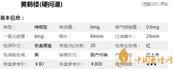 3、黃鶴樓(硬問道3mg) 84mm 硬盒 20 8mg ¥80