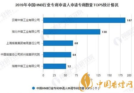 盡管我國現(xiàn)在暫未通過加熱不燃燒煙的銷售批準,但通過在Soopat上對“加熱不燃燒煙”的搜索,截至2019年年底,我國中煙集團已經(jīng)加快加熱不燃燒煙相關(guān)領(lǐng)域的研發(fā),其中我國云南中煙工業(yè)有限公司對加熱不燃燒煙的申請數(shù)量最多,為187個,緊隨其后的是湖北中煙工業(yè)有限公司,申請數(shù)量130個。