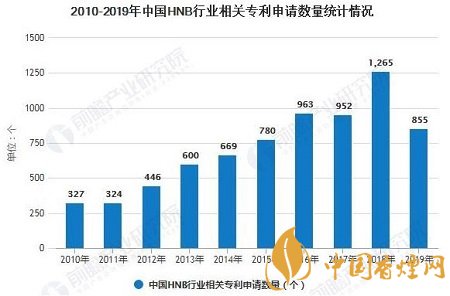 通過在Soopat上對“加熱不燃燒煙”的搜索,截至2019年年底,我國已有加熱不燃燒煙相關(guān)專利9278個。從整體來看,2013-2018年我國加熱不燃燒煙草的申請數(shù)量呈現(xiàn)上漲的趨勢,在2019年小幅度下滑,2019年HNB的相關(guān)專利申請數(shù)是855個。