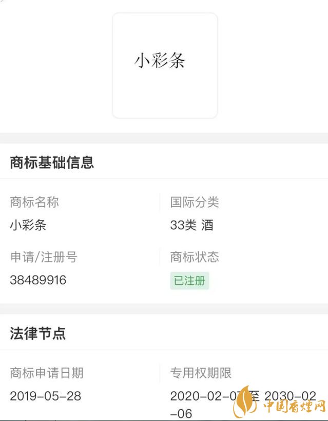 據(jù)了解,汽化酒這個(gè)項(xiàng)目,狼煙天下在2019年5月就開始立項(xiàng)了。還特意在33酒類申請了商標(biāo),商標(biāo)名字也叫做“小彩條”。