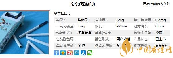 南京南京卷煙是江蘇中煙南京卷煙廠的代表品牌,其中南京香煙就是由細(xì)支香煙而聞名于全國的,在國內(nèi)也是數(shù)一數(shù)二的香煙品牌,非常受人歡迎,那么在對煊赫門香煙價格表分析之前,先來看一看2018煊赫門多少錢一包,這款香煙的售價為16元/包。