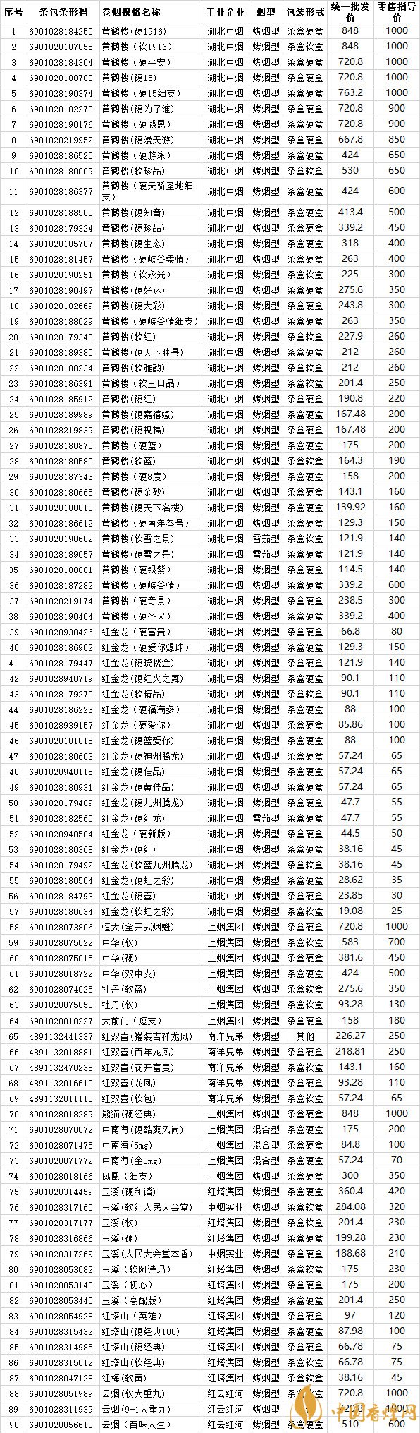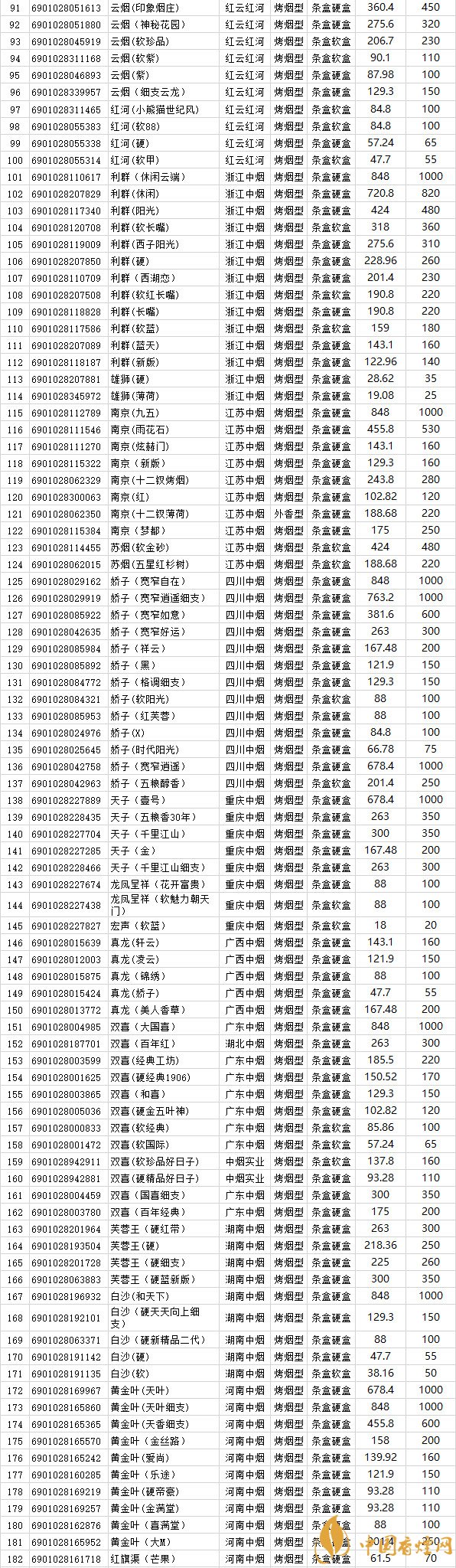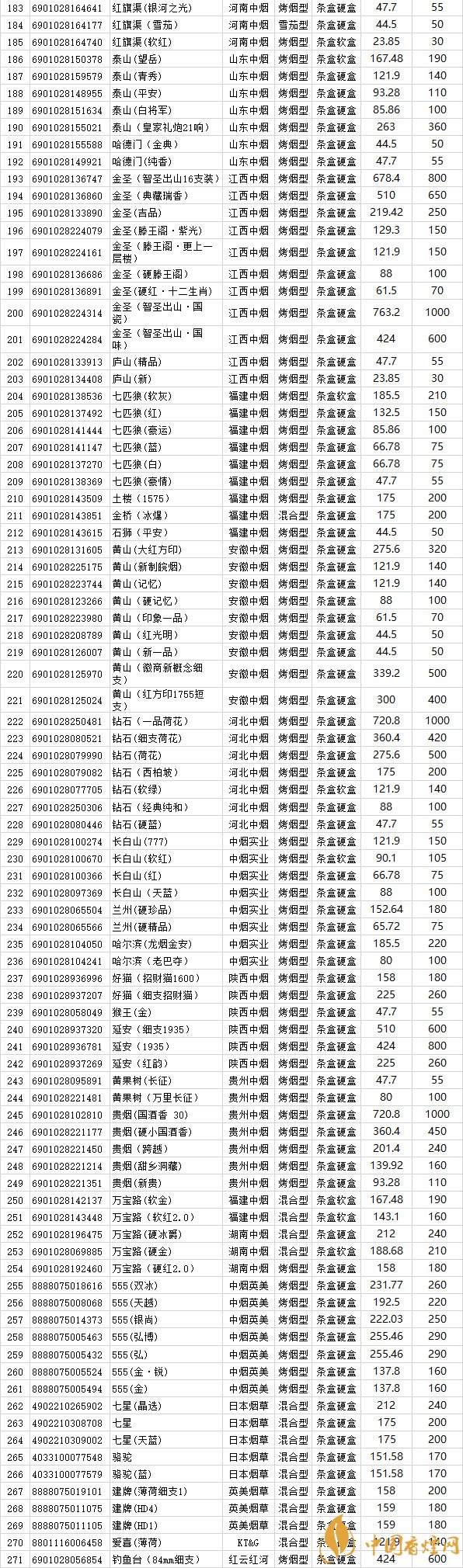 2018年卷煙銷售湖北地區(qū)271種 2018年上半年湖北省卷煙價(jià)格目錄