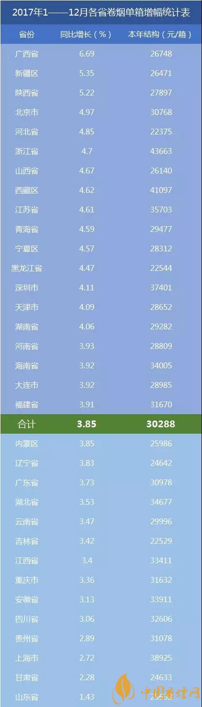 最新全國卷煙消費水平,雖然很多地區(qū)的卷煙單箱結(jié)構(gòu)可能低于全國水平,但是在“提結(jié)構(gòu)”上的努力也是不容忽視的。#p#副標題#e#