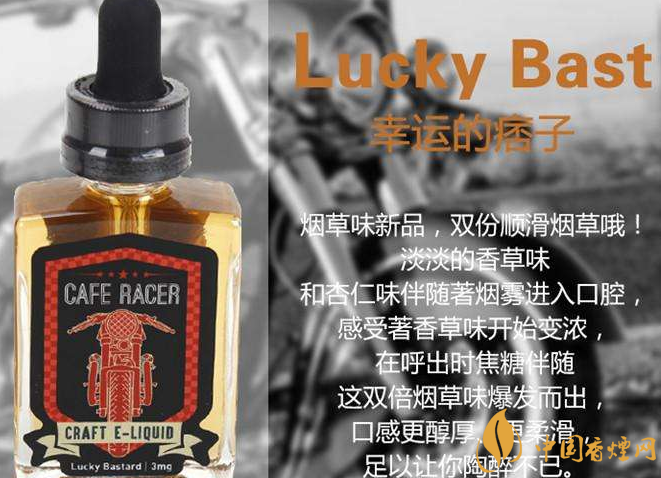 美國金獎煙油有哪些?美國金獎電子煙油Cafe就是其中一款,CAFE RACER摩托車系列煙油為加州恩西尼塔斯的始創(chuàng)者手工制作,均使用方形瓶裝,全系列有3款口味并都貼有印著機車圖案的標簽,為:Lucky13(幸運13)、Pech guzzi(桃子機車,guzzi為意大利語的摩托車)和Yogurt bomb(優(yōu)格炸彈),3款煙油的PG:VG均為30:70,適用于儲油和滴油霧化器,其中的Lucky13為美國峰會金獎煙油上的煙草口味金獎得主。