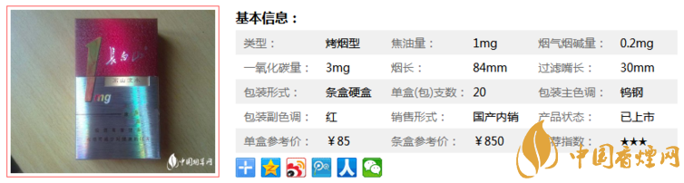 我們對(duì)于這款長(zhǎng)白山香煙價(jià)格表的了解以及有了新的層次了,下面來了解一下它的基本參數(shù)。