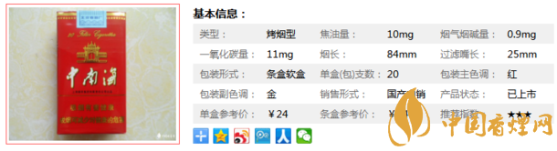 中南煙1mg一包多少錢 1mg中南海香煙價格表
