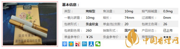 這款煙焦油量10mg,煙堿量0.8mg,煙支長(zhǎng)度較短,只有74mm,香煙不耐抽。