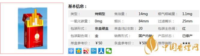 采用世界一流的HXD煙絲膨脹技術(shù),獨(dú)特的加工工藝和新型溝槽加蕊濾嘴棒新技術(shù),采用高透氣度的法國(guó)進(jìn)口卷煙紙,從而有效地降低了焦油和一氧化碳的含量,提高了產(chǎn)品吸食的安全性。下面我們一起來(lái)看看它的參數(shù)信息:煙長(zhǎng)84mm,焦油量14mg,煙堿量1.1mg。