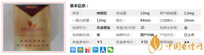 這煙作為5元檔的煙來說。還算可以。抽過好幾根??傮w覺得還不錯。當然了,相對而言,5元的話還是買白沙的可能性大一些。 這煙的煙氣有些沖,許多本地上年紀的人抽的比較多。經(jīng)香煙網(wǎng)小編市場調(diào)查雄獅新香煙售價為5元/包。