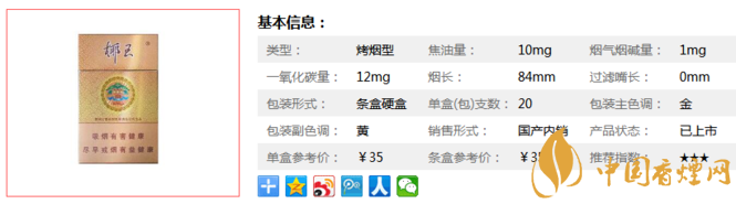 椰王硬金香煙為海南地產煙,性價比一般,比較出色的地方是,煙嘴的顏色和煙盒圖案一樣,非常匹配,漂亮豪華。作為一款旅游紀念香煙,有這樣就已經蠻不錯了。經香煙網小編市場調查椰王硬金售價為35元/包。