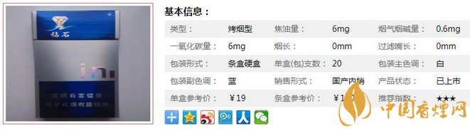 三、鉆石扁藍(lán)時(shí)尚香煙參數(shù)