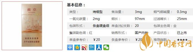 類型 :烤煙型 焦油量 :3mg 煙氣煙堿量 :0.3mg 一氧化碳量 :2mg