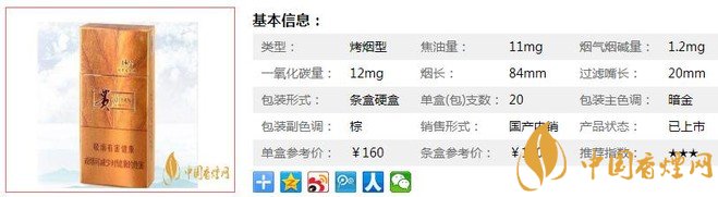 | 煙長(zhǎng):84mm | 過(guò)濾嘴長(zhǎng):20mm | 包裝形式:條盒硬盒 | 單盒(包)支數(shù):20 |