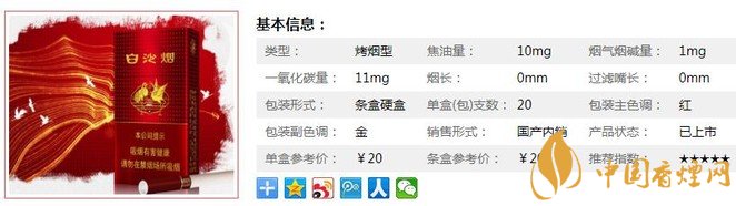 | 類型 :烤煙型 | 焦油量 :10mg | 煙氣煙堿量 :1mg | 一氧化碳量 :11mg |