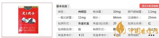 類(lèi)型 :烤煙型 焦油量 :10mg 煙氣煙堿量 :1.1mg 一氧化碳量 :11mg
