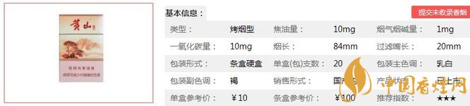 類型 :烤煙型 焦油量 :10mg 煙氣煙堿量 :1mg 一氧化碳量 :10mg