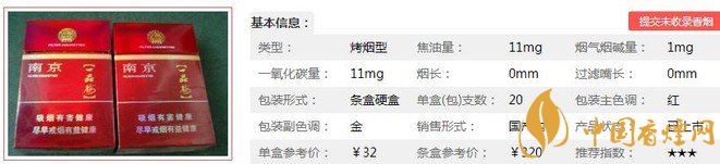 南京臻品煙支長:84mm,過濾嘴長:30mm,拉線隱性防偽技術應用;煙氣焦油量的高過濾率與香氣高釋放率有機統(tǒng)一,卷煙吸食滿足感與健康需求完美結合。煙氣甜韻圓潤,柔綿舒適;30mm超長濾嘴,有效降低煙氣中焦油、一氧化碳等有害物質(zhì)。下面我們一起來看南京臻品的參數(shù)信息:焦油量:11mg 煙堿量:1mg 一氧化碳量:11mg