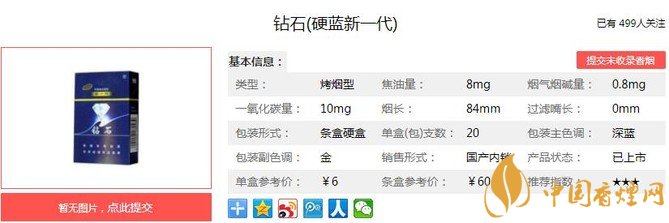 鉆石硬藍新一代價格及參數(shù) 鉆石低檔位代表性香煙
