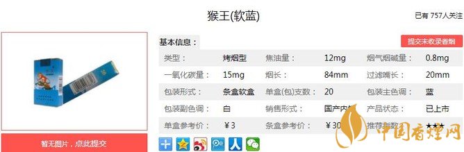 以上便是由香煙網(wǎng)小編為大家介紹的關(guān)于猴王軟藍(lán)價(jià)格及參數(shù) 陜西低價(jià)煙中的佼佼者的相關(guān)信息,想要了解更多有關(guān)內(nèi)容請(qǐng)點(diǎn)擊:猴王喜慶價(jià)格及參數(shù) 猴王喜慶獨(dú)家口感分析