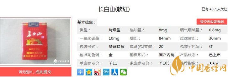 長(zhǎng)白山軟紅在全國(guó)低焦油卷煙市場(chǎng)的暢銷(xiāo),反映了消費(fèi)者對(duì)長(zhǎng)白山軟紅的高度喜愛(ài),但其價(jià)位也是一個(gè)非常重要的因素。長(zhǎng)白山軟紅香煙價(jià)位正是大眾消費(fèi)者購(gòu)買(mǎi)卷煙產(chǎn)品的主流價(jià)位之一,這個(gè)價(jià)位擁有著非常巨大的消費(fèi)基礎(chǔ)。經(jīng)香煙網(wǎng)小編市場(chǎng)調(diào)查長(zhǎng)白山軟紅售價(jià)為11元/包。