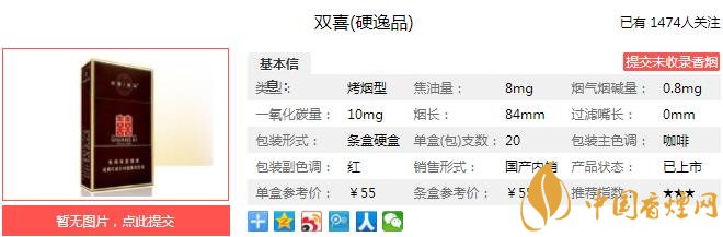 雙喜硬逸品多少錢一包 雙喜硬逸品口感及參數(shù)介紹