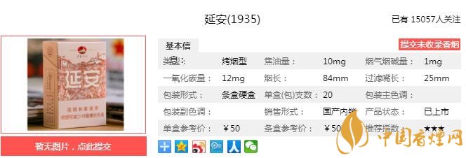 以上便是由香煙網(wǎng)小編為大家介紹的關(guān)于延安(1935)的相關(guān)信息。這款煙給人的感覺就是舒服,除了密碼鎖設(shè)置,銅版螺紋水松紙的設(shè)計(jì)也是一大亮點(diǎn),手感超級(jí)棒的。想要了解更多內(nèi)容請點(diǎn)擊:玉溪軟和諧多少錢一包 玉溪軟和諧口感及參數(shù)介紹