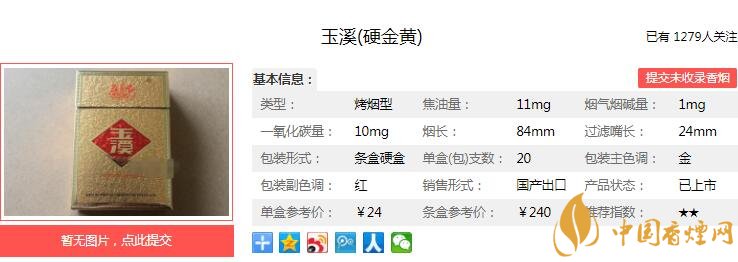 玉溪硬金黃為特制高級過濾嘴卷煙,精選自然醇化的玉溪地區(qū)上等煙葉為原料,配制專用香精,經過嚴格的科學配方和嚴格工藝加工而成。從制絲、卷接到包裝,均采用先進的進口現(xiàn)代生產設備,從而使整個生產過程有嚴格的質量控制和檢測保證。所以該卷煙產品質量穩(wěn)定,具有煙絲顏色金黃,光澤油潤,煙香味清雅諧調,吸味醇和口感舒適,勁頭適中,煙灰色潔白的獨特風格。經香煙網小編市場調查玉溪硬金黃售價為24元/包。