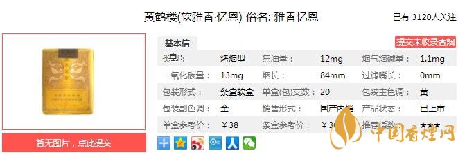 以上便是由香煙網(wǎng)小編為大家介紹的關(guān)于黃鶴樓雅香憶恩多少錢(qián) 黃鶴樓情感經(jīng)典的代表作的相關(guān)信息,想要了解更多有關(guān)內(nèi)容請(qǐng)點(diǎn)擊:黃鶴樓細(xì)支珍品價(jià)格50元一包 黃鶴樓細(xì)支珍品口感分析