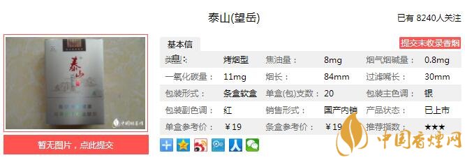 “泰山(望岳)”是2008年山東中煙工業(yè)公司推出的泰山牌系列產(chǎn)品中的主力型號。“望岳泰山”在設(shè)計(jì)上追求新口味、新工藝、新享受,采用了綜合降焦減害技術(shù)及超高溫HXD氣流烘絲技術(shù),使產(chǎn)品品質(zhì)更臻完美。經(jīng)香煙網(wǎng)小編市場調(diào)查泰山望岳售價(jià)為19元/包。