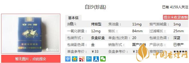 以上便是由香煙網(wǎng)小編為大家介紹的關于白沙珍品香煙價格 白沙珍品口感及參數(shù)介紹的相關信息,想要了解更多有關內(nèi)容請點擊:塞爾維亞100S硬紅香煙外包裝欣賞及口感測評