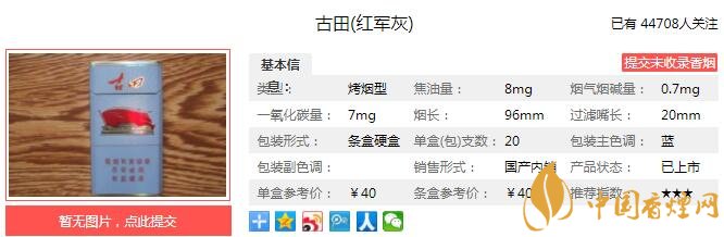 以上便是由香煙網(wǎng)小編為大家介紹的關于古田紅軍灰多少錢一包 古田紅軍灰口感如何的相關信息,想要了解更多有關內容請點擊:泰山秀系列香煙有幾種 六款泰山秀系列香煙價格介紹