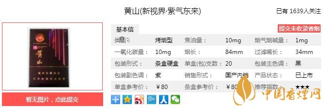 以上便是由香煙網小編為大家介紹的關于黃山新視界紫氣東來多少錢一包 黃山新視界口感分析的相關信息,想要了解更多有關內容請點擊:古田紅軍灰多少錢一包 古田紅軍灰口感如何