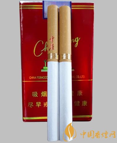 天子(重慶紅)包裝為激光防偽鐳射簽內(nèi)容,與煙盒正面一樣。煙盒頂端除了顏色與中華不同外,設(shè)計(jì)方式很像,尤其是錫紙上的重慶字樣,也與軟中華設(shè)計(jì)有異曲同工之妙。尾端是重慶的漢語(yǔ)拼音字樣,字體樣式與煙盒背面相同。這款重慶紅的整體包裝,酷似軟中華香煙。