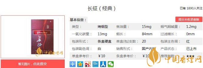 以上便是香煙網(wǎng)小編為大家介紹的關于長征香煙價格及圖片 長征經(jīng)典香煙價格10元一包的相關信息,看完之后大家是不是對于長征(經(jīng)典)這款香煙的相關信息更加了解呢。大家還想查詢更多的相關內容歡迎點擊:黃果樹長征香煙如何鑒別真假 圖文詳解2018新版