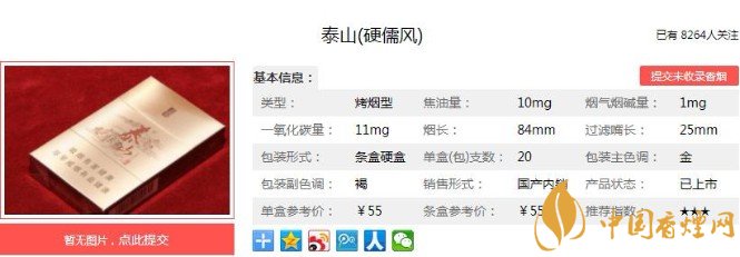 以上便是香煙網(wǎng)小編為大家介紹的關(guān)于泰山硬儒風(fēng)價(jià)格及口感分析 性價(jià)比較高的一款香煙的相關(guān)信息,大家看完之后是不是對(duì)于泰山(硬儒風(fēng))的相關(guān)信息更加了解呢,想要了解更多內(nèi)容歡迎點(diǎn)擊:泰山藍(lán)顏悅多少錢 泰山藍(lán)顏悅價(jià)格及口感品吸