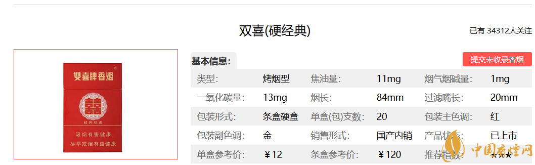 紅雙喜香煙是上海知名香煙品牌,相信大家都聽說過這個(gè)牌子的香煙。紅雙喜其中一款雙喜硬經(jīng)典也是很受歡迎的一款香煙。雙喜硬經(jīng)典多少錢一班?今天小編就為大家介紹一下雙喜硬經(jīng)典的價(jià)格參數(shù)以及抽過的煙民對(duì)他的評(píng)價(jià)。