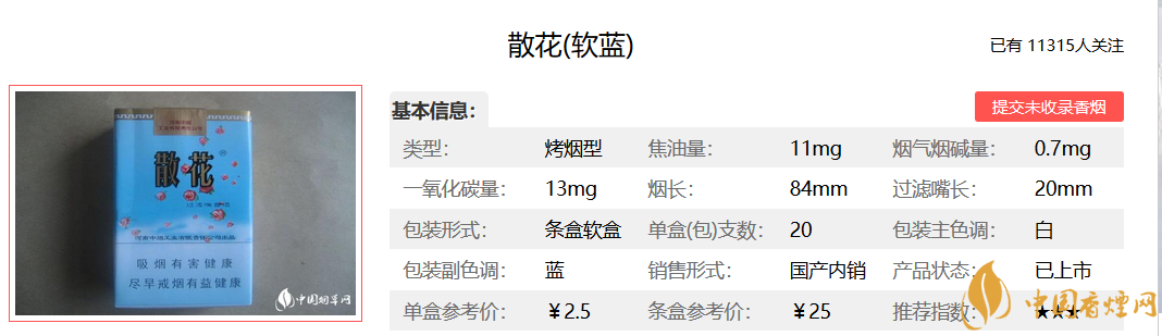 以上是香煙網小編為大家介紹的散花煙多少錢一包,散花軟藍價格介紹以及口感分析的相關內容,看完介紹之后,你是不是對這款香煙有了進一步了解?想查詢更多香煙信息,請關注香煙網。