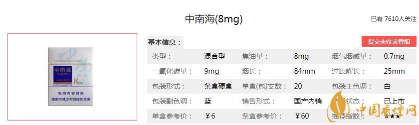 中南海香煙相信各位煙民們都不陌生,他是北京的香煙品牌,曾經(jīng)是毛主席的口糧。今天為大家介紹一款中南海8mg香煙。那么中南海8mg多少錢一包?為了讓大家對這款香煙更加了解,下面為大家介紹一下中南海8mg香煙價格表圖以及各地最新零售價格。