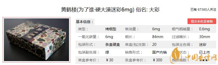 外觀看起來很不錯,軍旅迷彩風(fēng),大氣養(yǎng)眼。符合黃鶴樓綿軟的特點(diǎn),不過稍微有點(diǎn)辣喉,黃鶴樓大彩的焦油含量會更高一些,