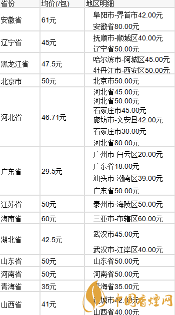 2020細(xì)支荷花各地最新價(jià)格表大全