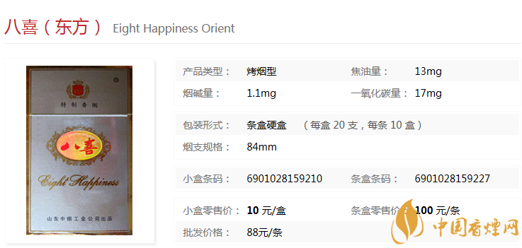 八喜是山東的香煙品牌,這個品牌的香煙可能在山東地區(qū)比較常見,他是清香型卷煙產(chǎn)品,曾被評為山東八大名牌之一。今天小編為大家介紹一下八喜香煙的價格表圖以及產(chǎn)品的核心參數(shù),具體如下: