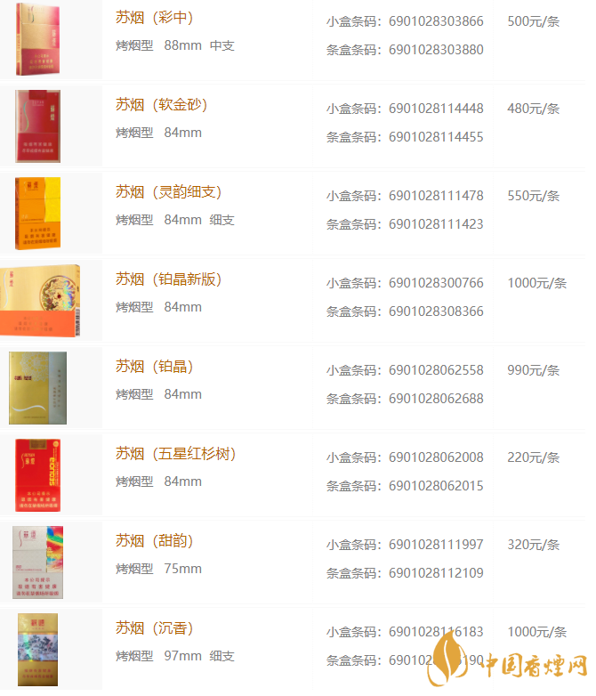 以上就是有香煙網(wǎng)小編整理的有關(guān)蘇煙的價格信息,想要了解更多點擊香煙網(wǎng)查看更多咨詢吧!