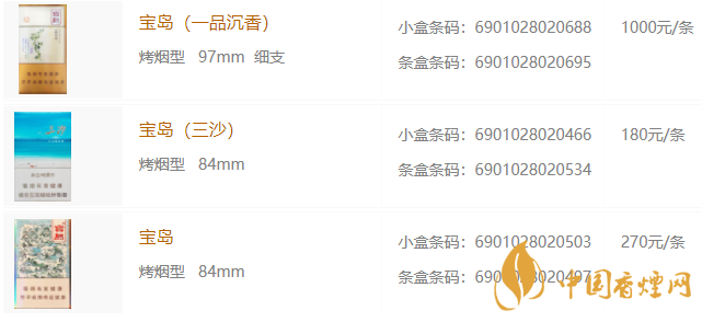 2020年寶島香煙價(jià)格表圖大全