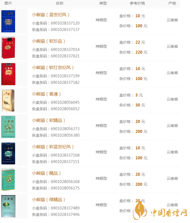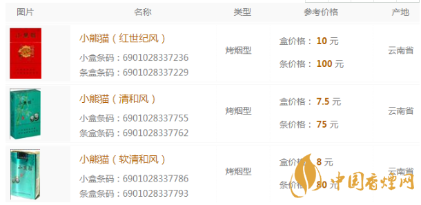 小熊貓香煙多少錢一盒 最新小熊貓香煙價格表圖一覽