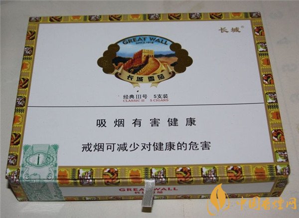 長城雪茄經(jīng)典3號秉承長城雪茄煙經(jīng)典系列包裝簡約,金黃色的花色鑲邊顯與經(jīng)典1號、經(jīng)典2號如出一轍。經(jīng)高級技師的純手工制作,極大程序保留了煙葉的純凈。將堅果和咖啡味巧妙的融合,將精致與優(yōu)雅發(fā)揮極致。長城雪茄(經(jīng)典3號)多少錢?接下來香煙網(wǎng)小編將為大家介紹長城雪茄煙價格表和圖片。