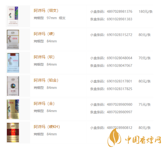 阿詩瑪香煙是知名的香煙品牌,那么阿詩瑪香煙多少錢一包?這里小編將為大家介紹6款阿詩瑪香煙價(jià)格以及信息參數(shù)。以下香煙網(wǎng)小編為你介紹2020年阿詩瑪香煙價(jià)格表圖以及相關(guān)信息,希望對你了解阿詩瑪香煙價(jià)格有所幫助。